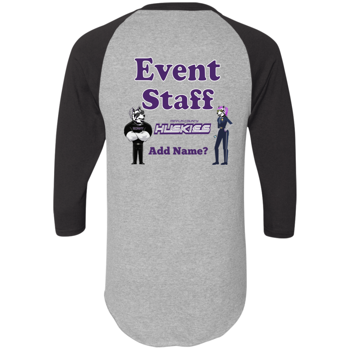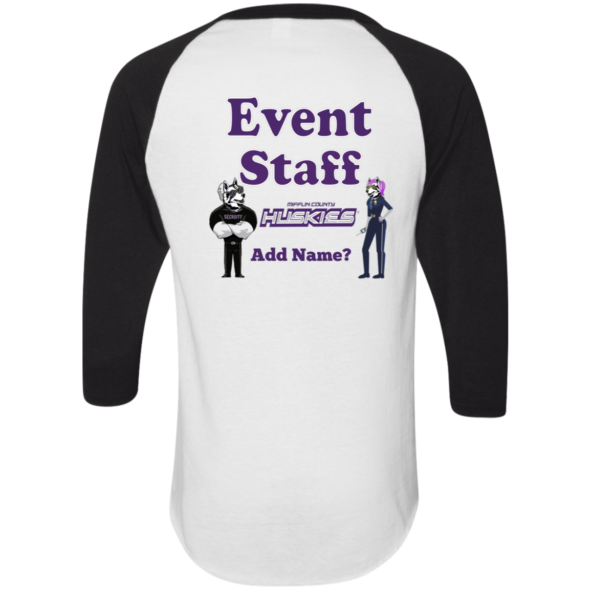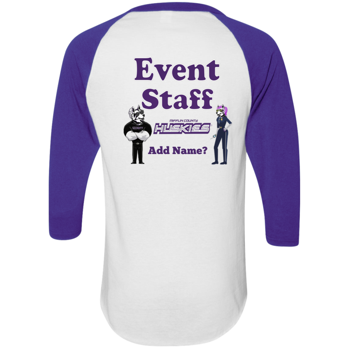 Non-Embroidered shirts that have a graphics in the front left may be customized with either purple or white text (look for "Personalize" or "Personalization").  Buyer should pick a nice contrast to the chosen apparel's color, so the text stands out and is easy to read.