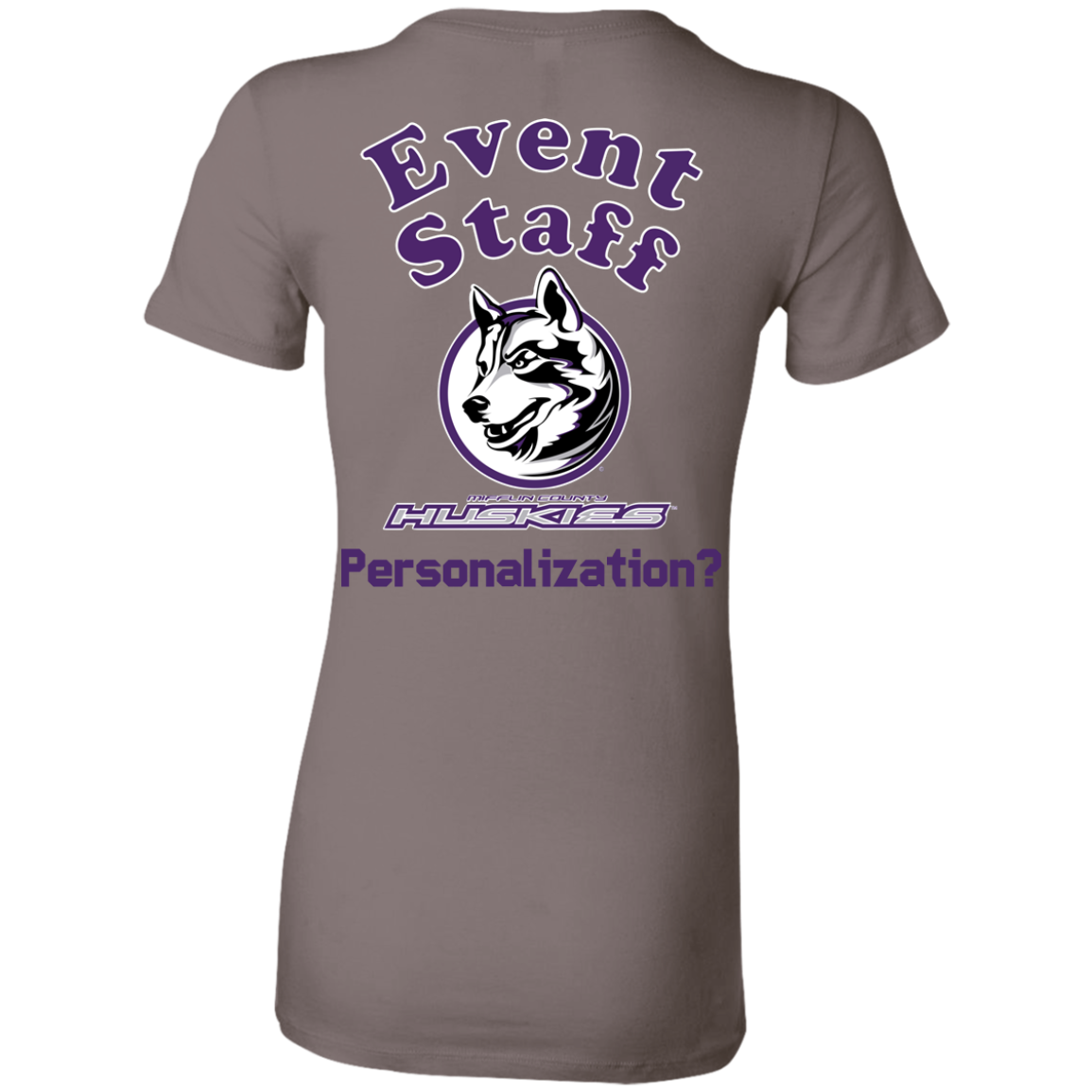 Non-Embroidered shirts that have a graphics in the front left may be customized with either purple or white text (look for "Personalize" or "Personalization").  Buyer should pick a nice contrast to the chosen apparel's color, so the text stands out and is easy to read.