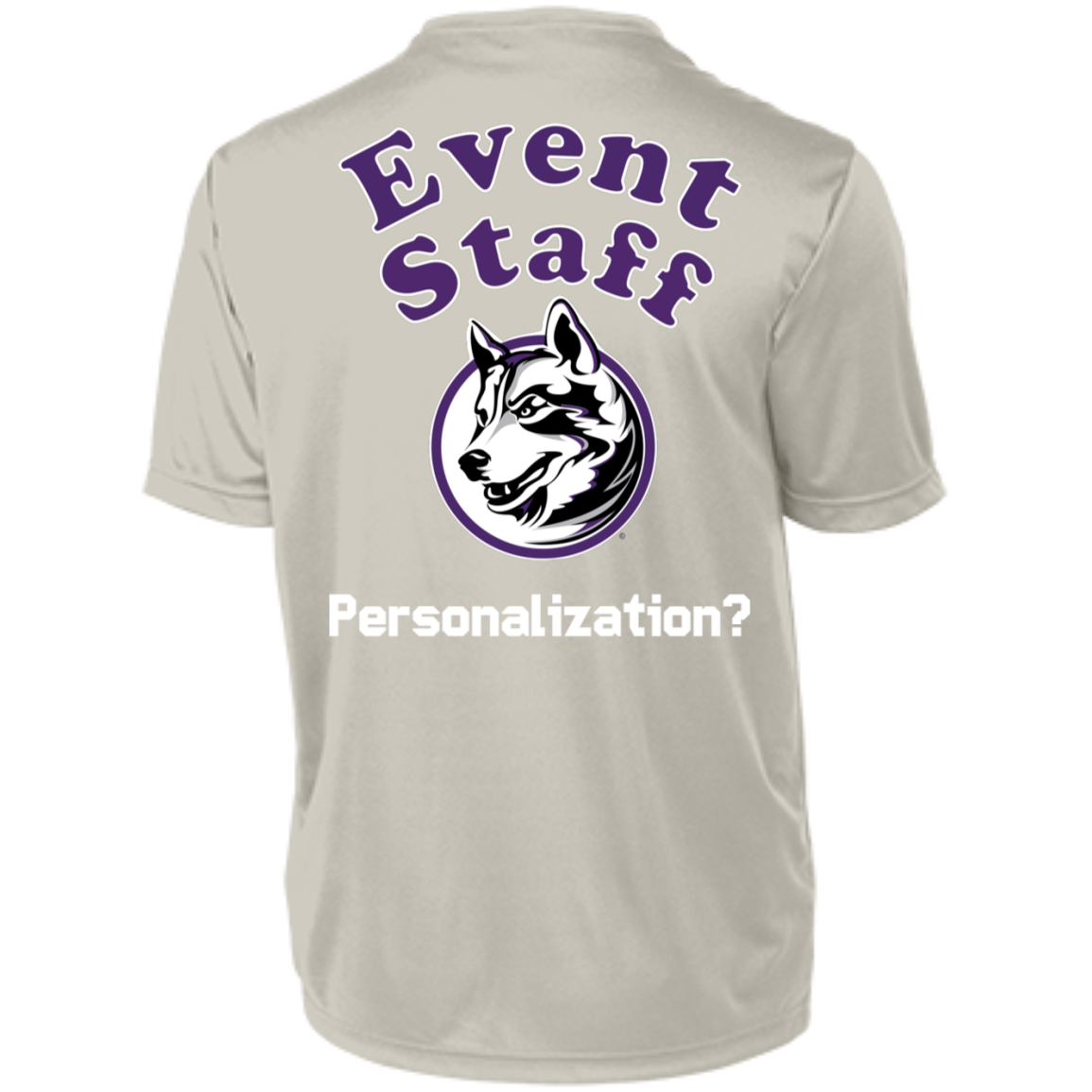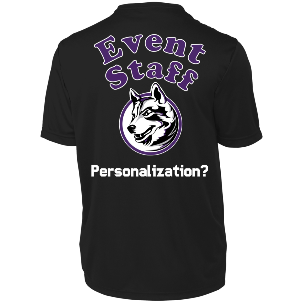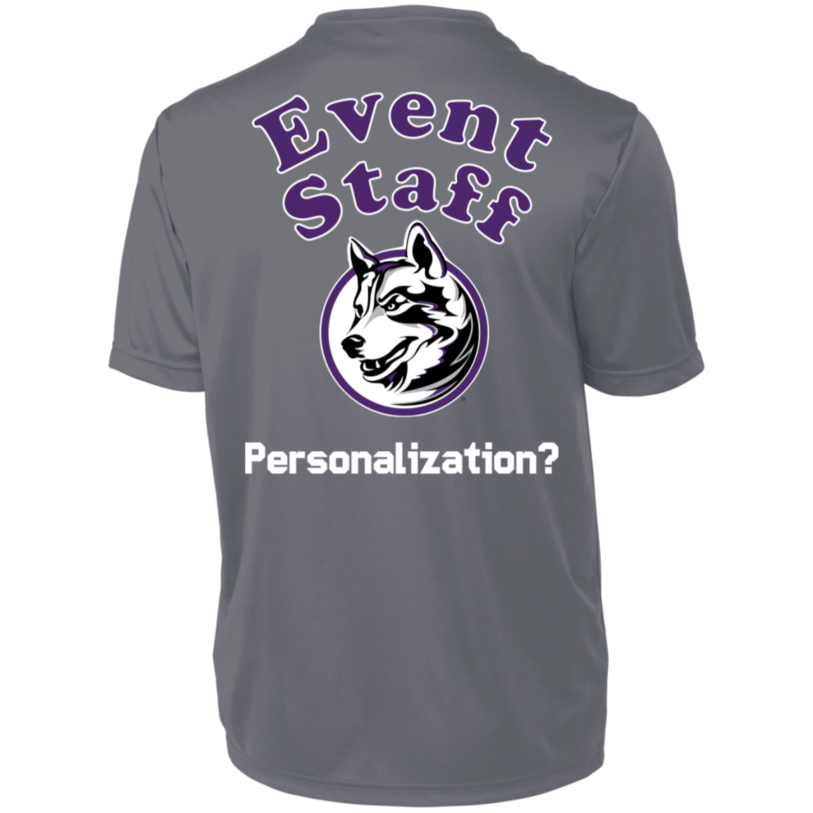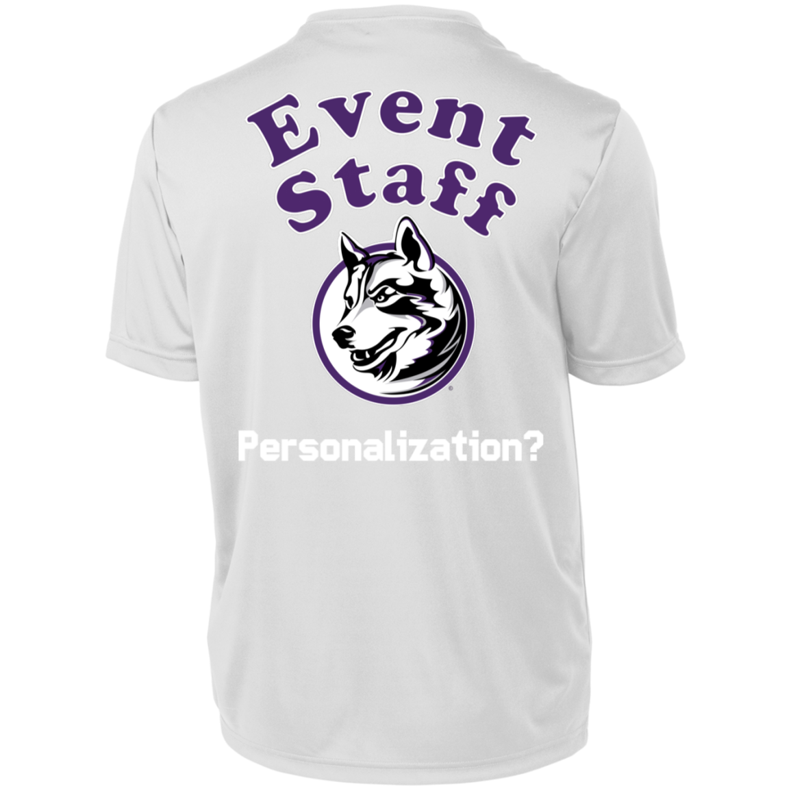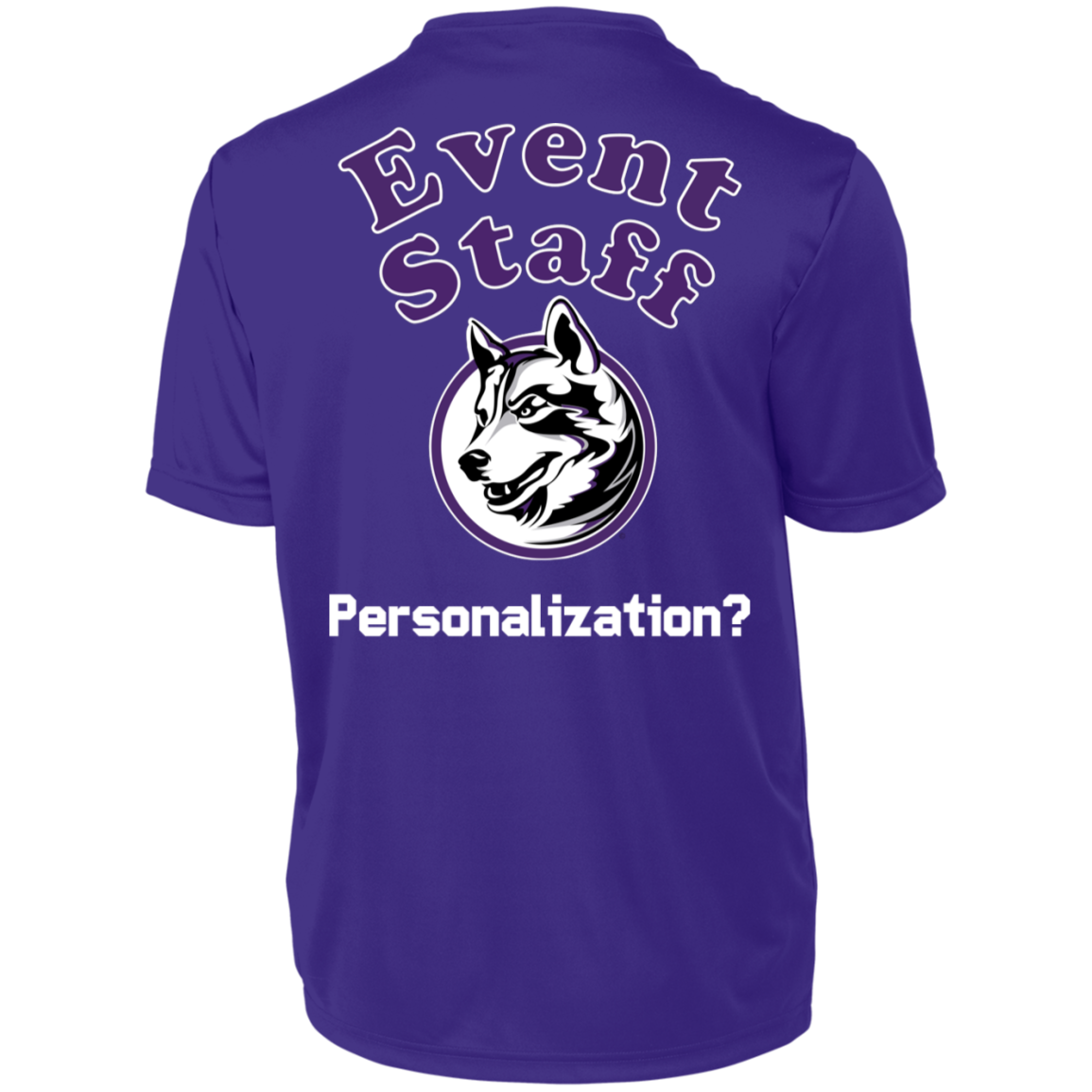 Non-Embroidered shirts that have a graphics in the front left may be customized with either purple or white text (look for "Personalize" or "Personalization").  Buyer should pick a nice contrast to the chosen apparel's color, so the text stands out and is easy to read.