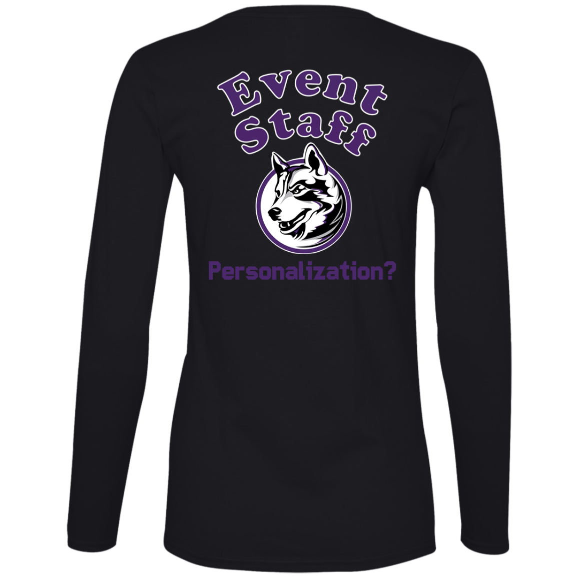 Non-Embroidered shirts that have a graphics in the front left may be customized with either purple or white text (look for "Personalize" or "Personalization").  Buyer should pick a nice contrast to the chosen apparel's color, so the text stands out and is easy to read.