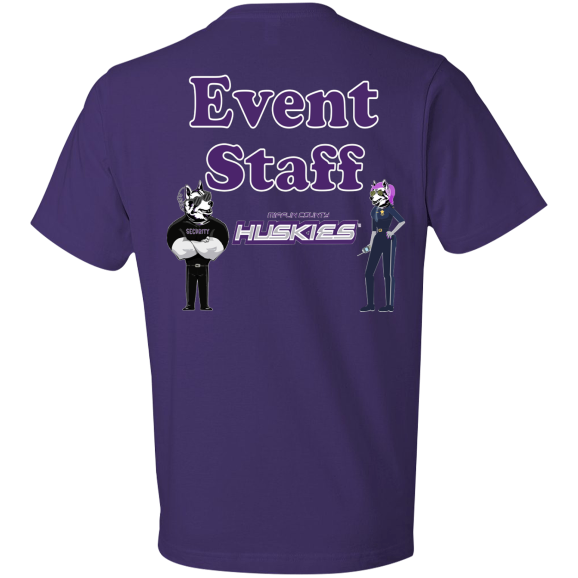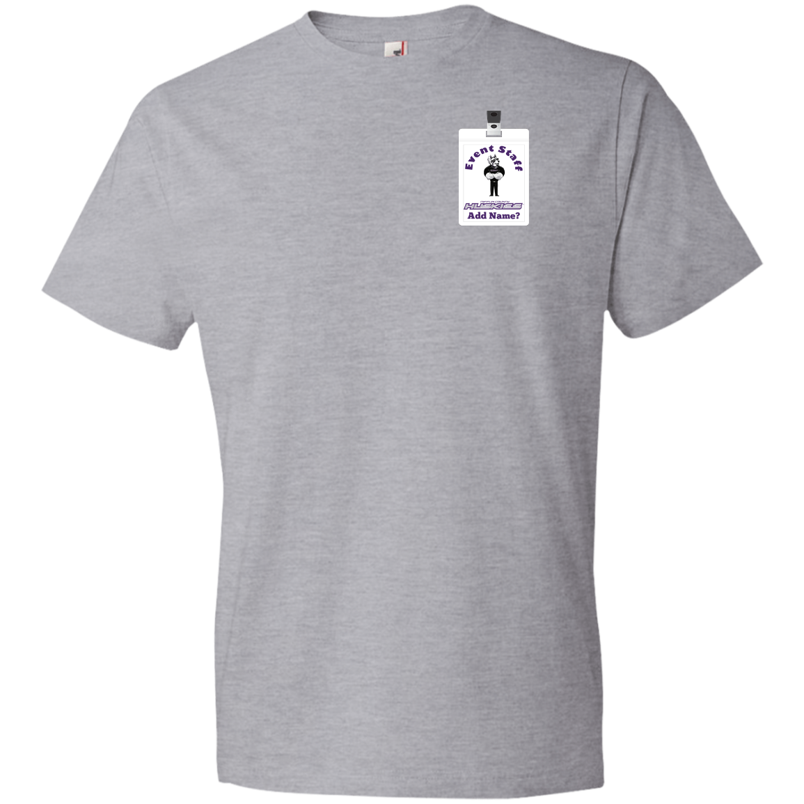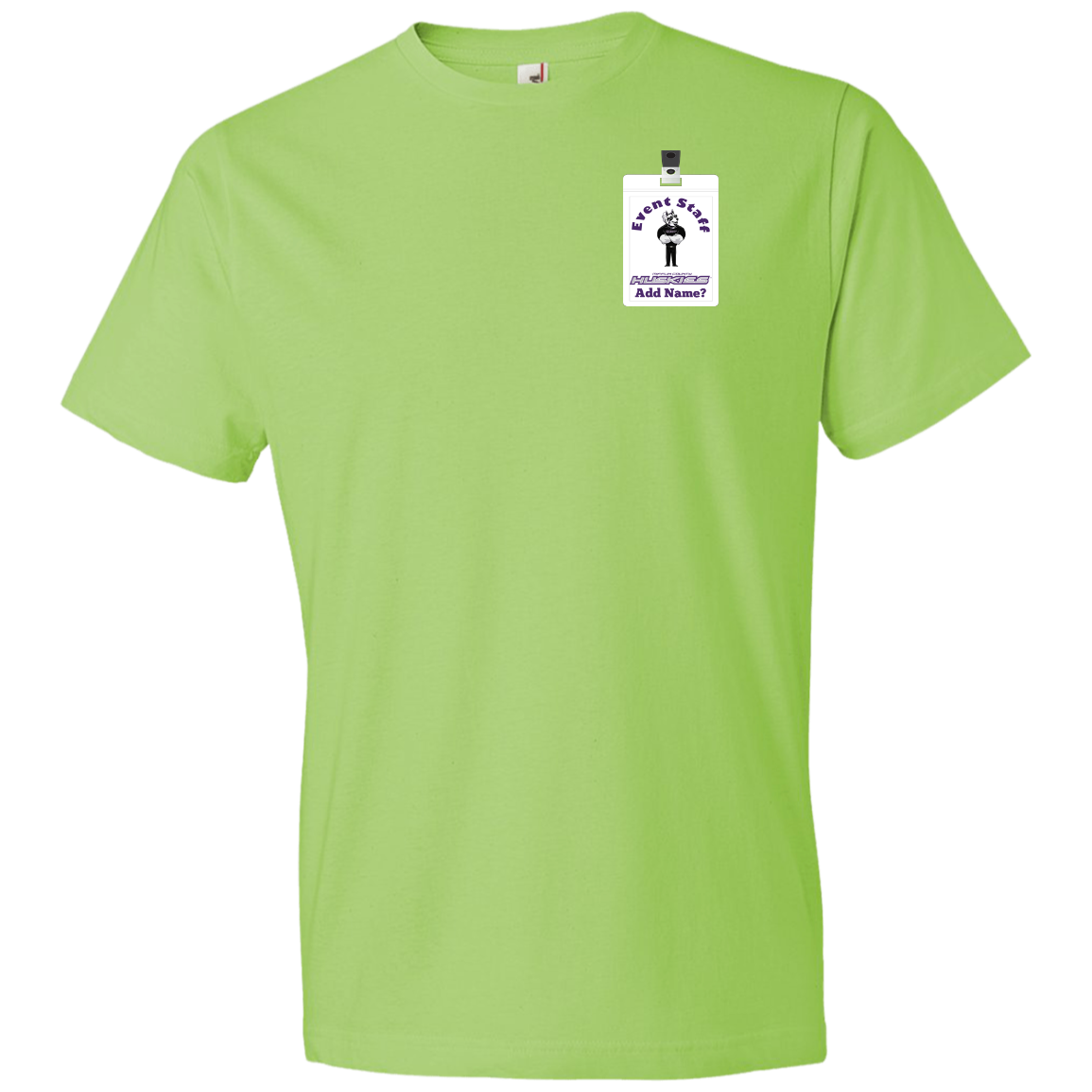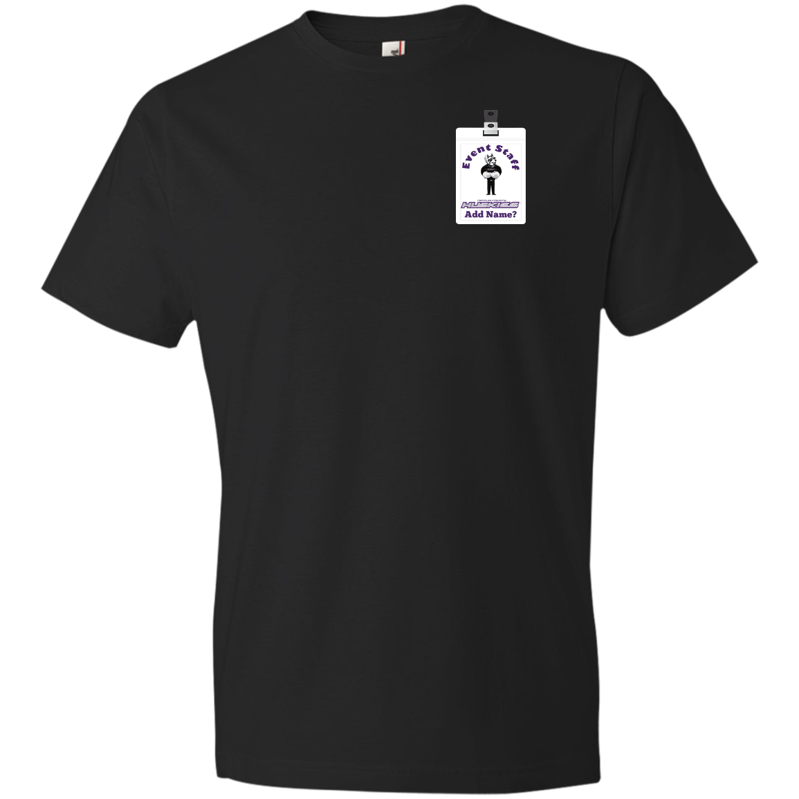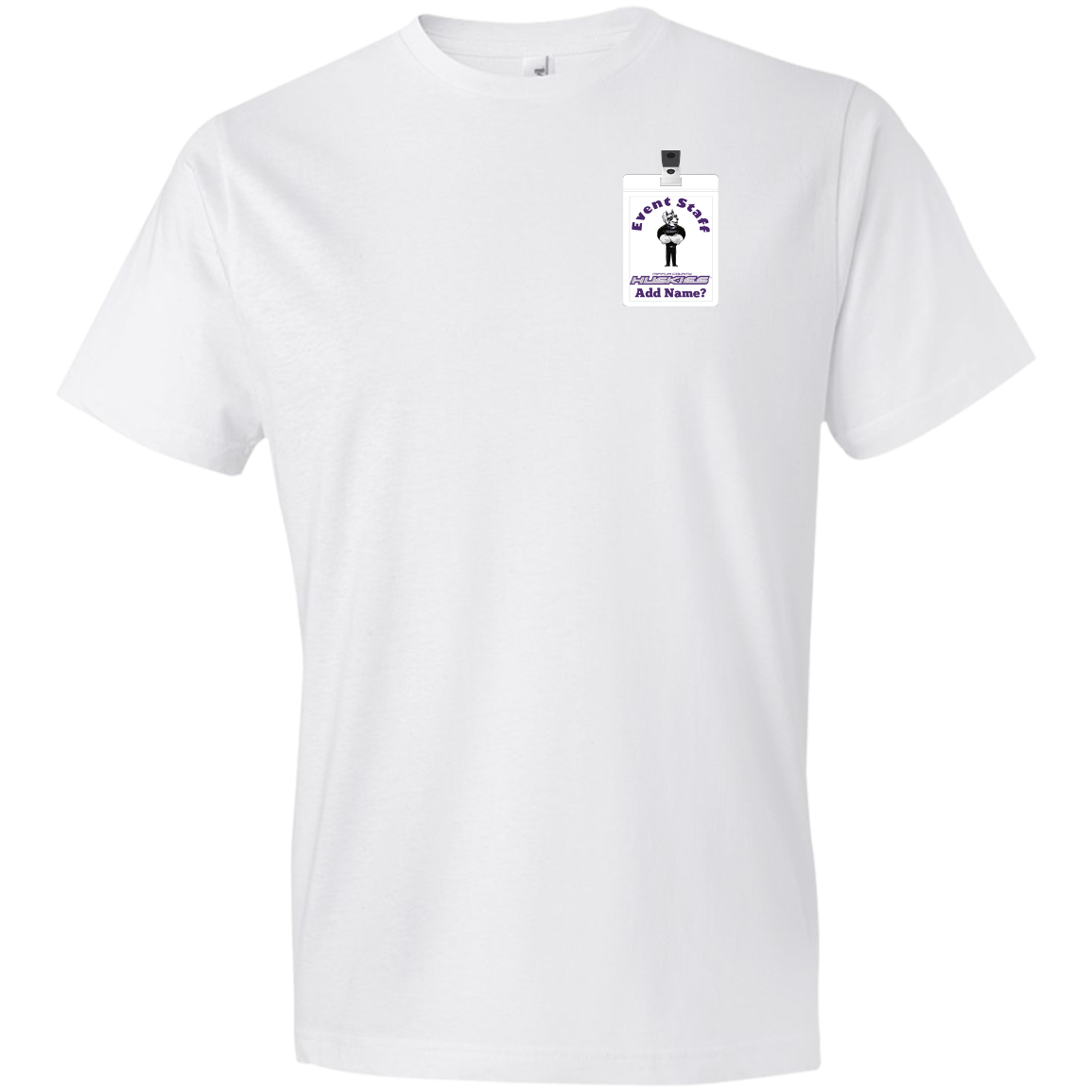 Non-Embroidered shirts that have a graphics in the front left may be customized with either purple or white text (look for "Personalize" or "Personalization").  Buyer should pick a nice contrast to the chosen apparel's color, so the text stands out and is easy to read.