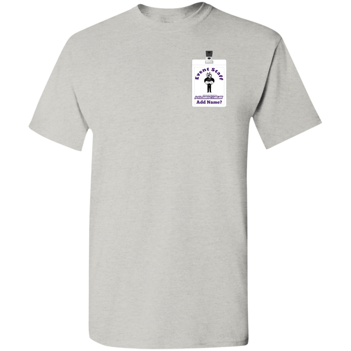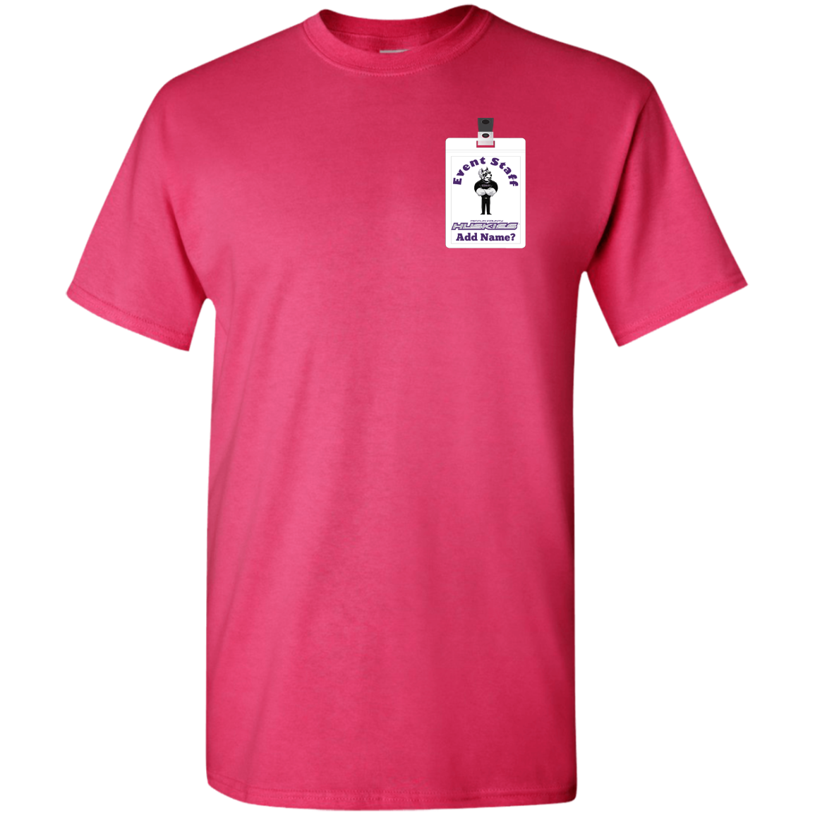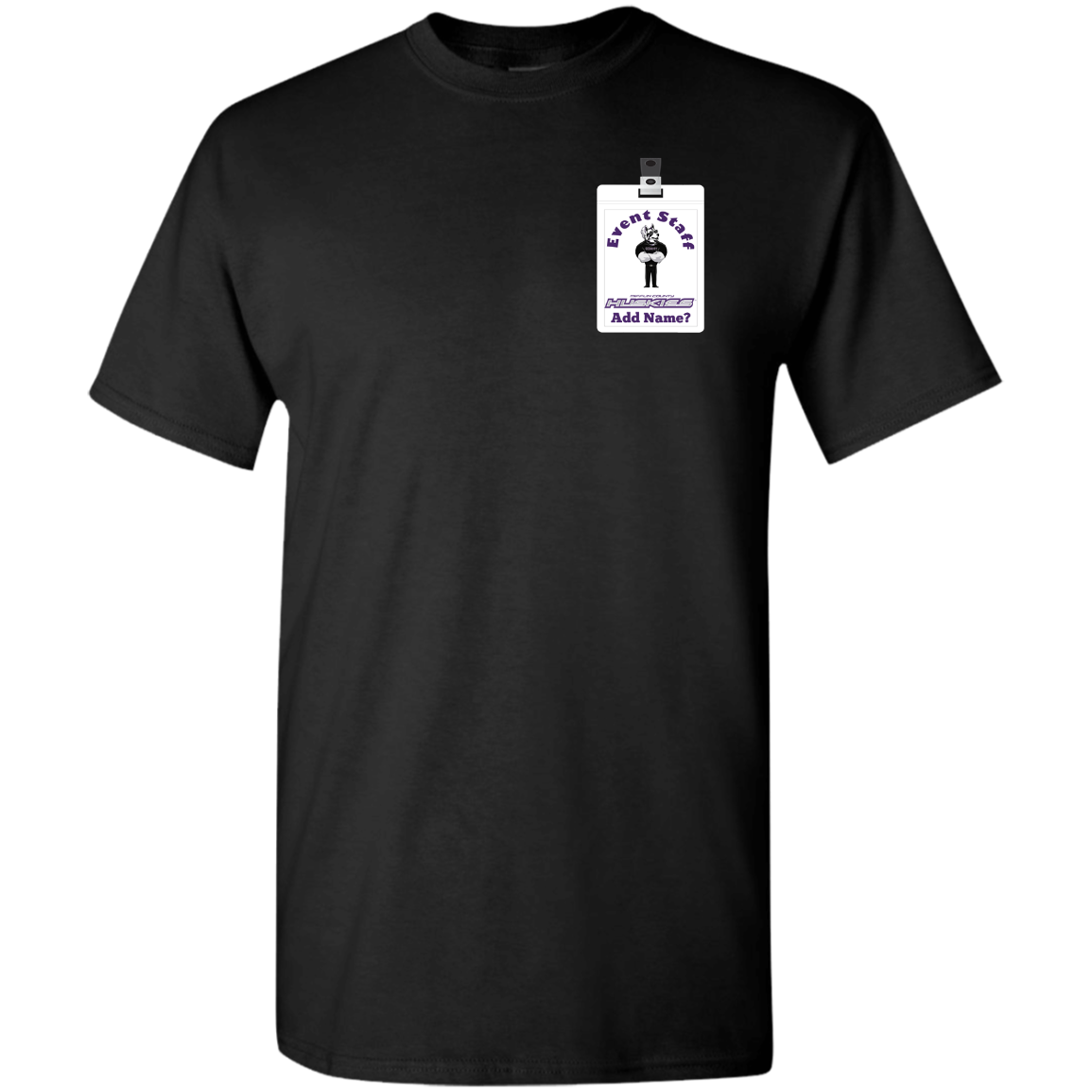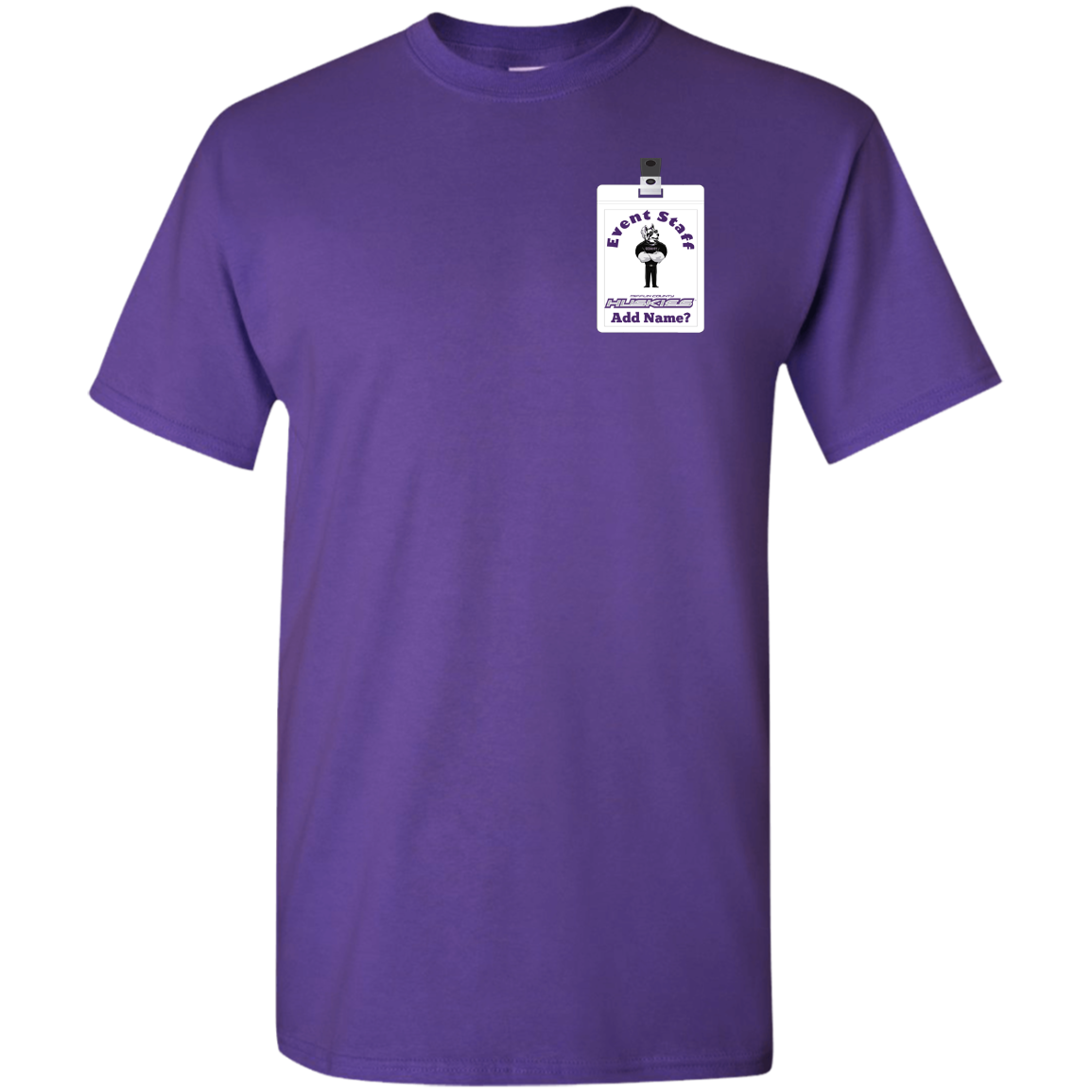 Non-Embroidered shirts that have a graphics in the front left may be customized with either purple or white text (look for "Personalize" or "Personalization").  Buyer should pick a nice contrast to the chosen apparel's color, so the text stands out and is easy to read.