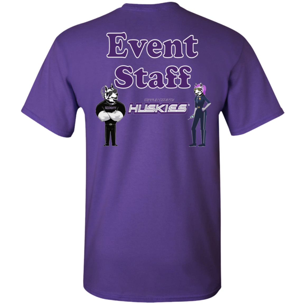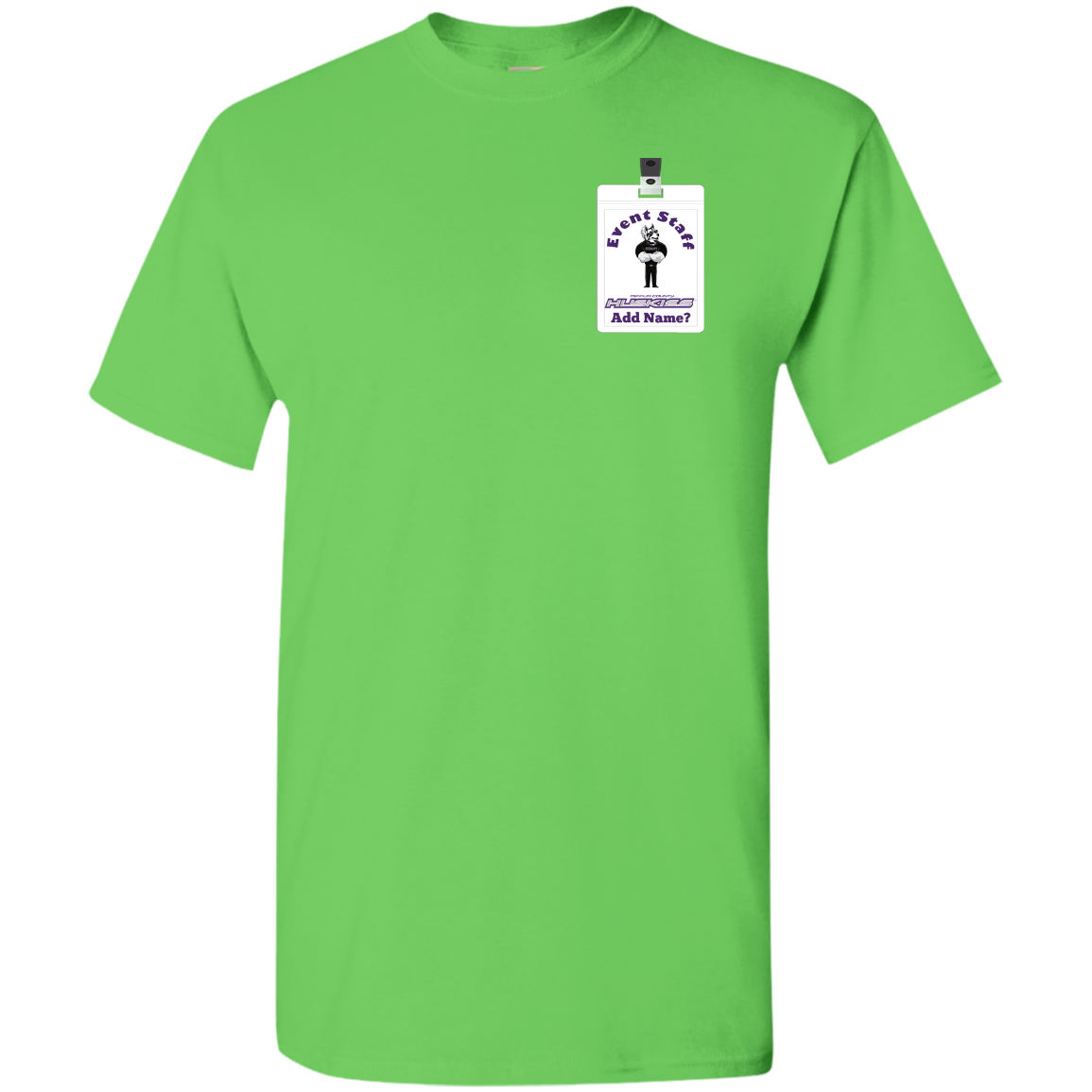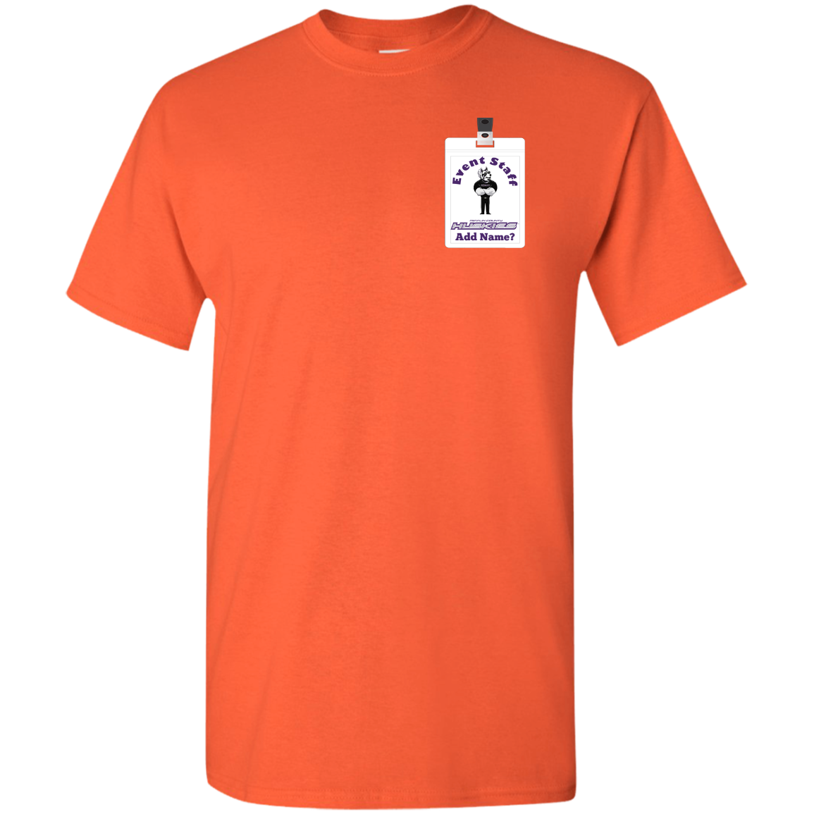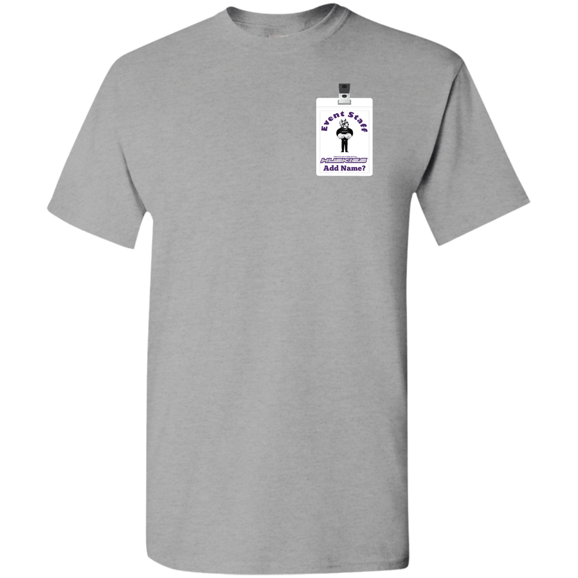 Non-Embroidered shirts that have a graphics in the front left may be customized with either purple or white text (look for "Personalize" or "Personalization").  Buyer should pick a nice contrast to the chosen apparel's color, so the text stands out and is easy to read.