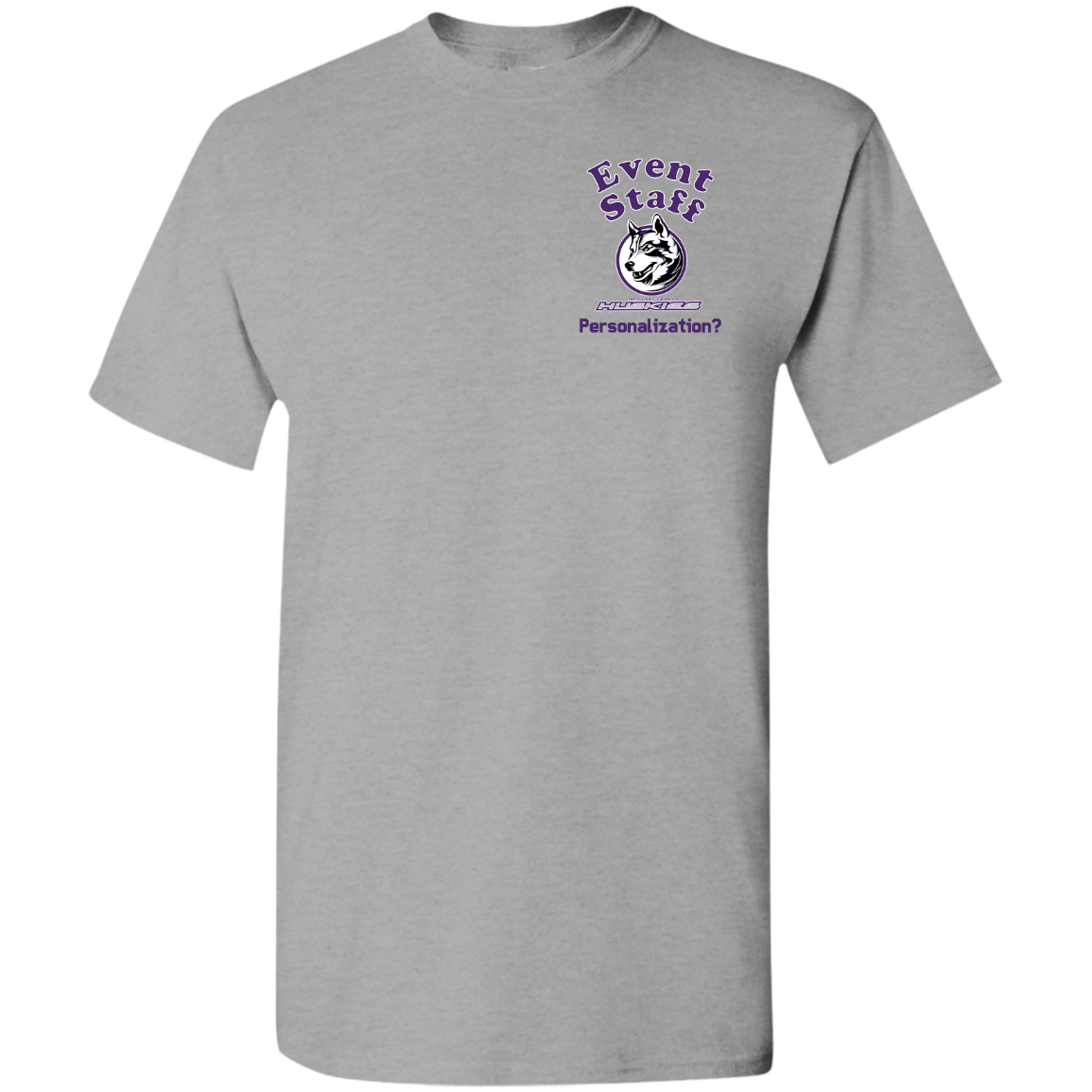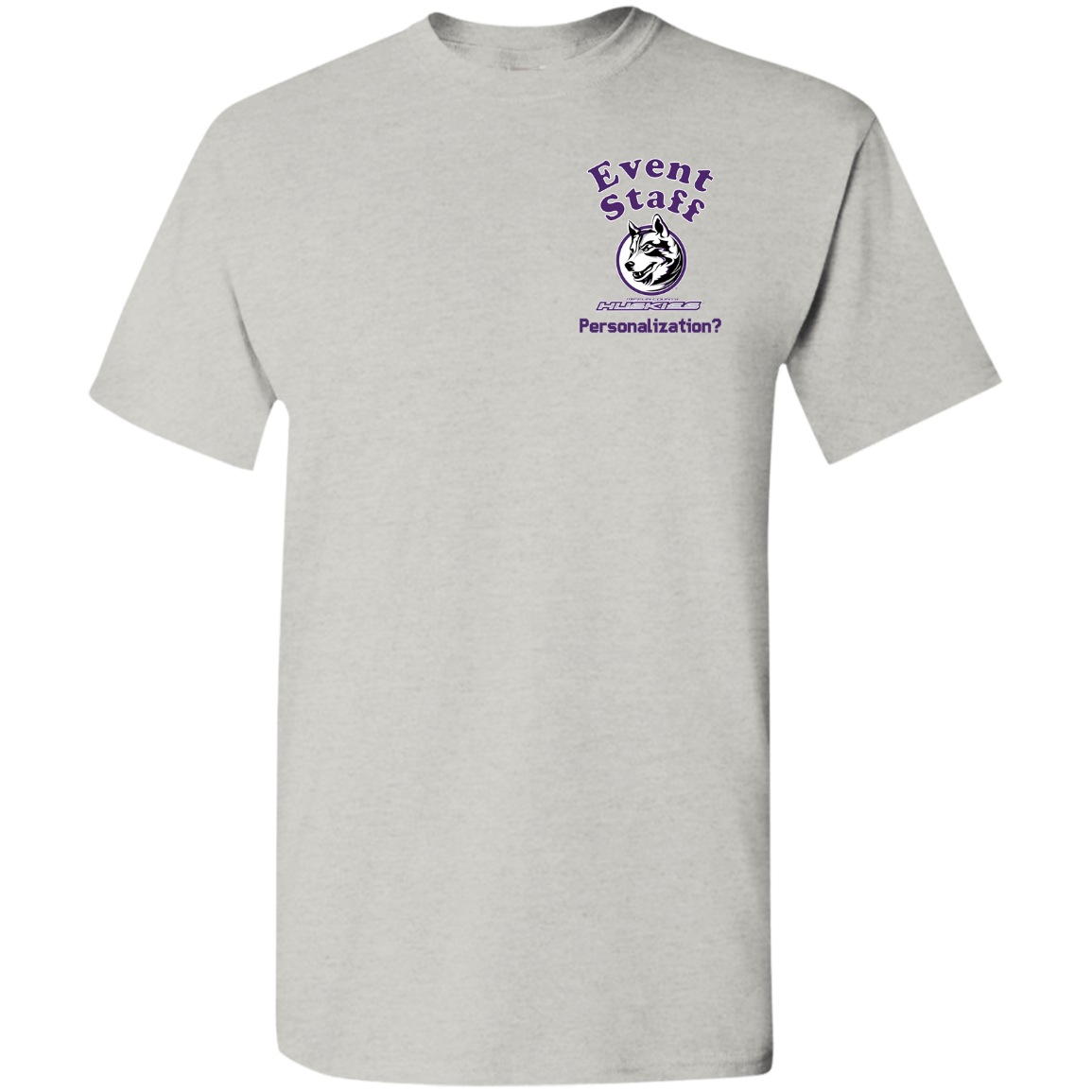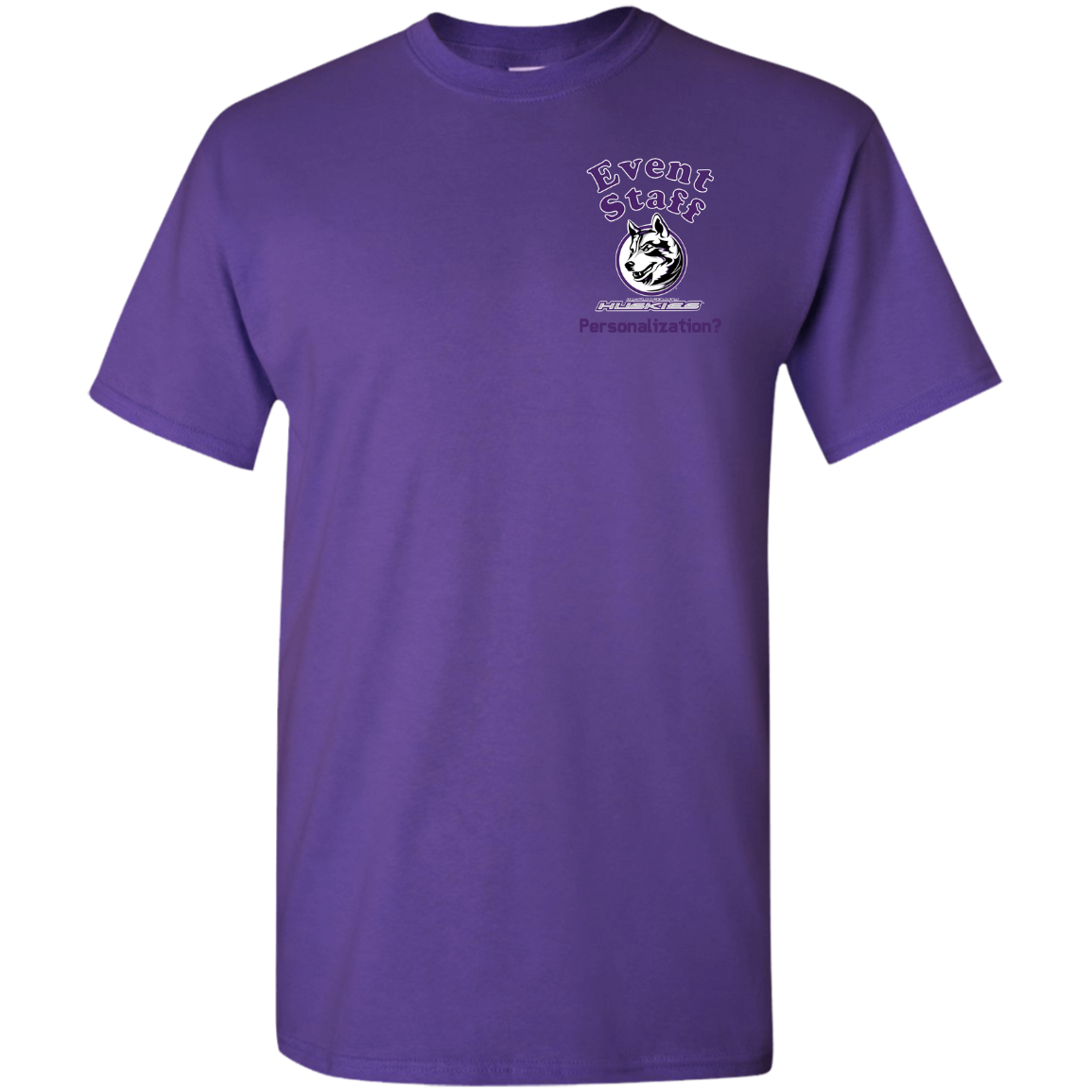 Non-Embroidered shirts that have a graphics in the front left may be customized with either purple or white text (look for "Personalize" or "Personalization").  Buyer should pick a nice contrast to the chosen apparel's color, so the text stands out and is easy to read.