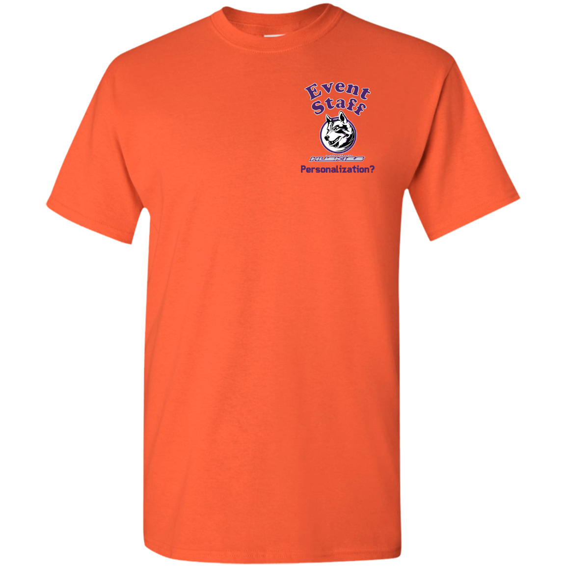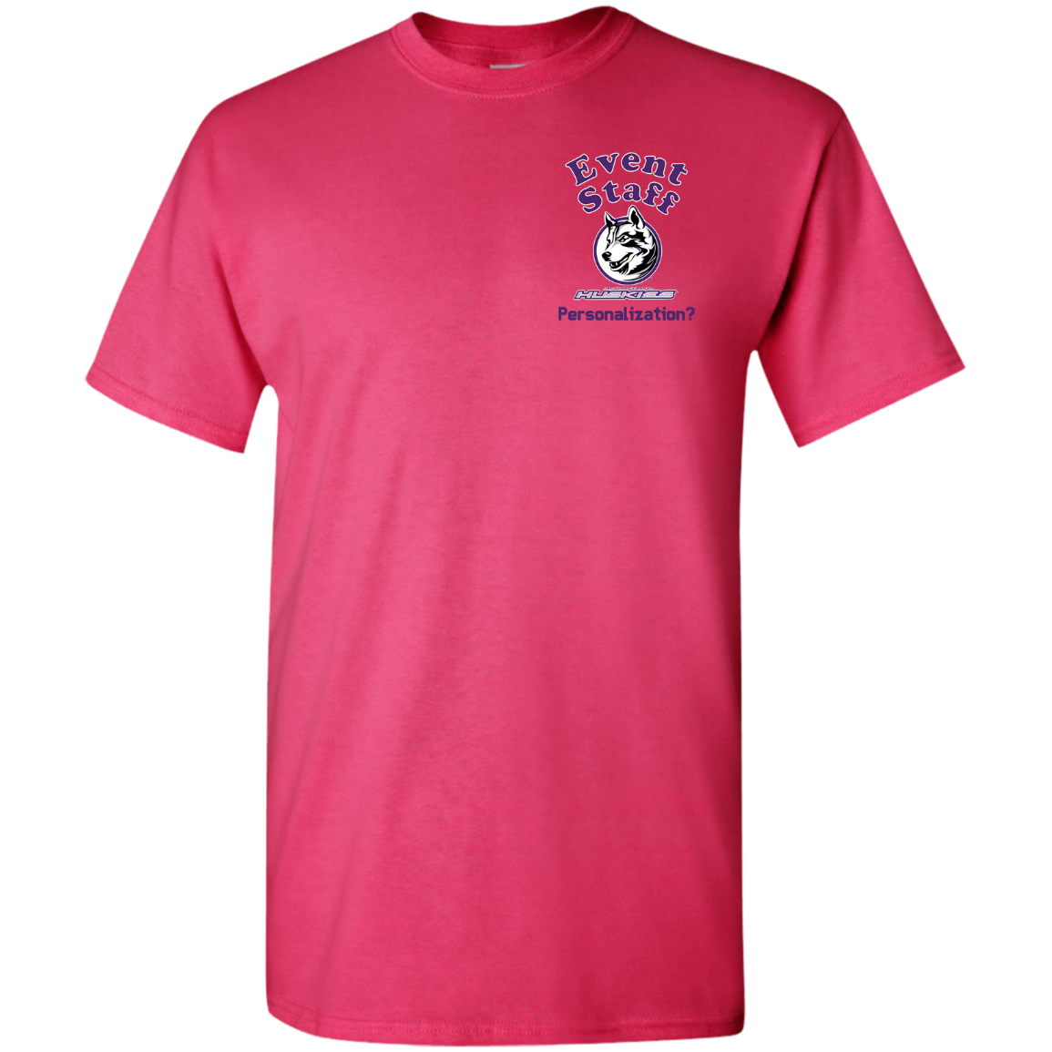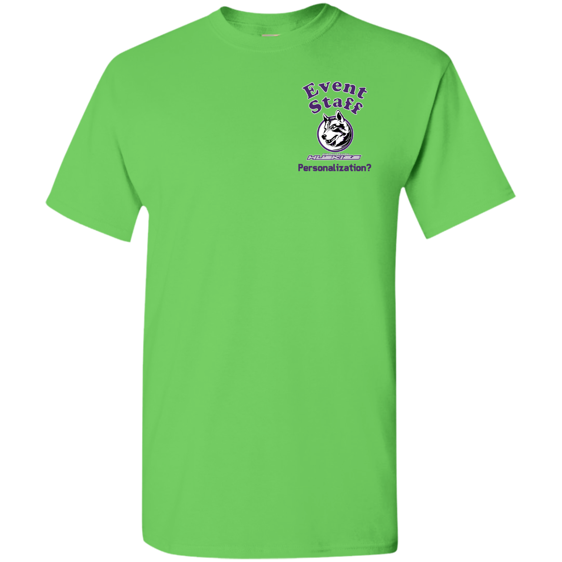 Non-Embroidered shirts that have a graphics in the front left may be customized with either purple or white text (look for "Personalize" or "Personalization").  Buyer should pick a nice contrast to the chosen apparel's color, so the text stands out and is easy to read.