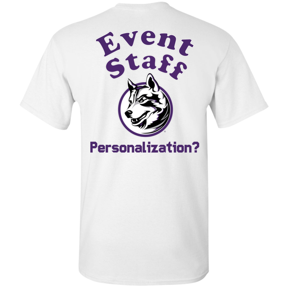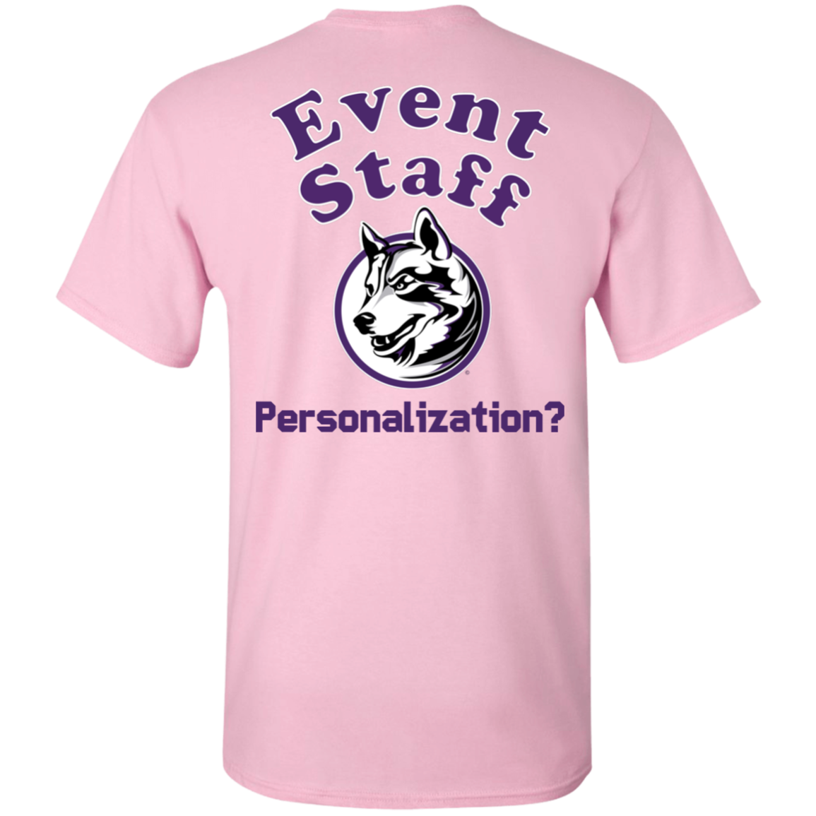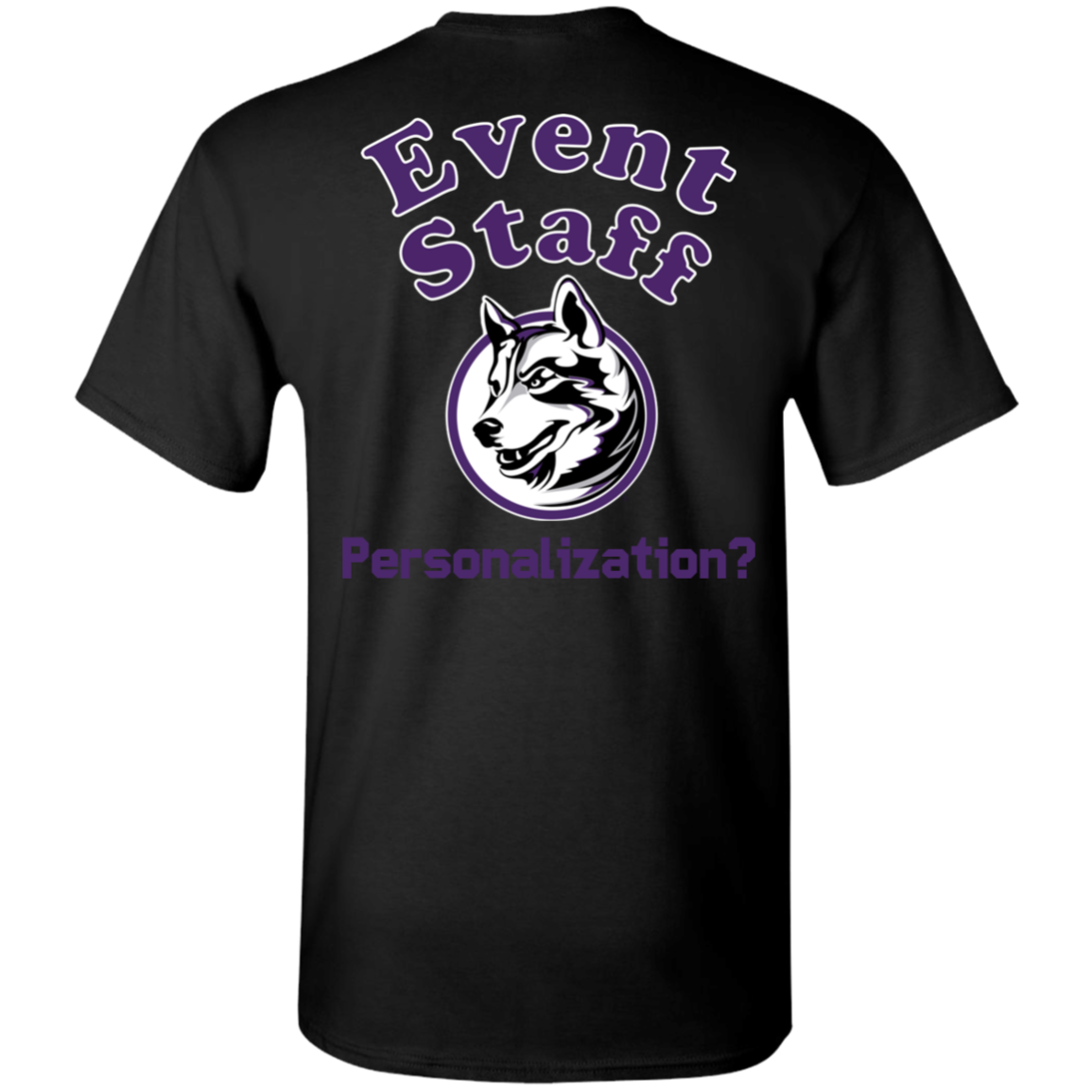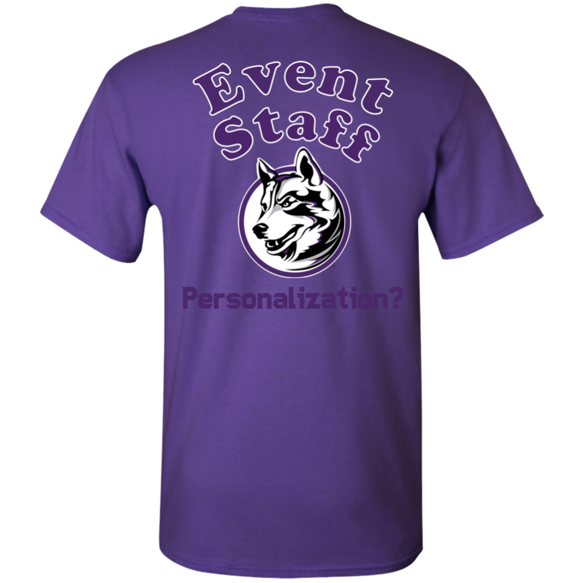 Non-Embroidered shirts that have a graphics in the front left may be customized with either purple or white text (look for "Personalize" or "Personalization").  Buyer should pick a nice contrast to the chosen apparel's color, so the text stands out and is easy to read.