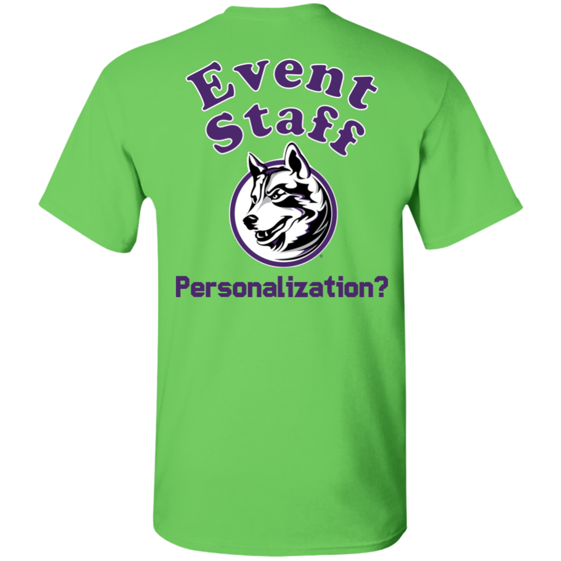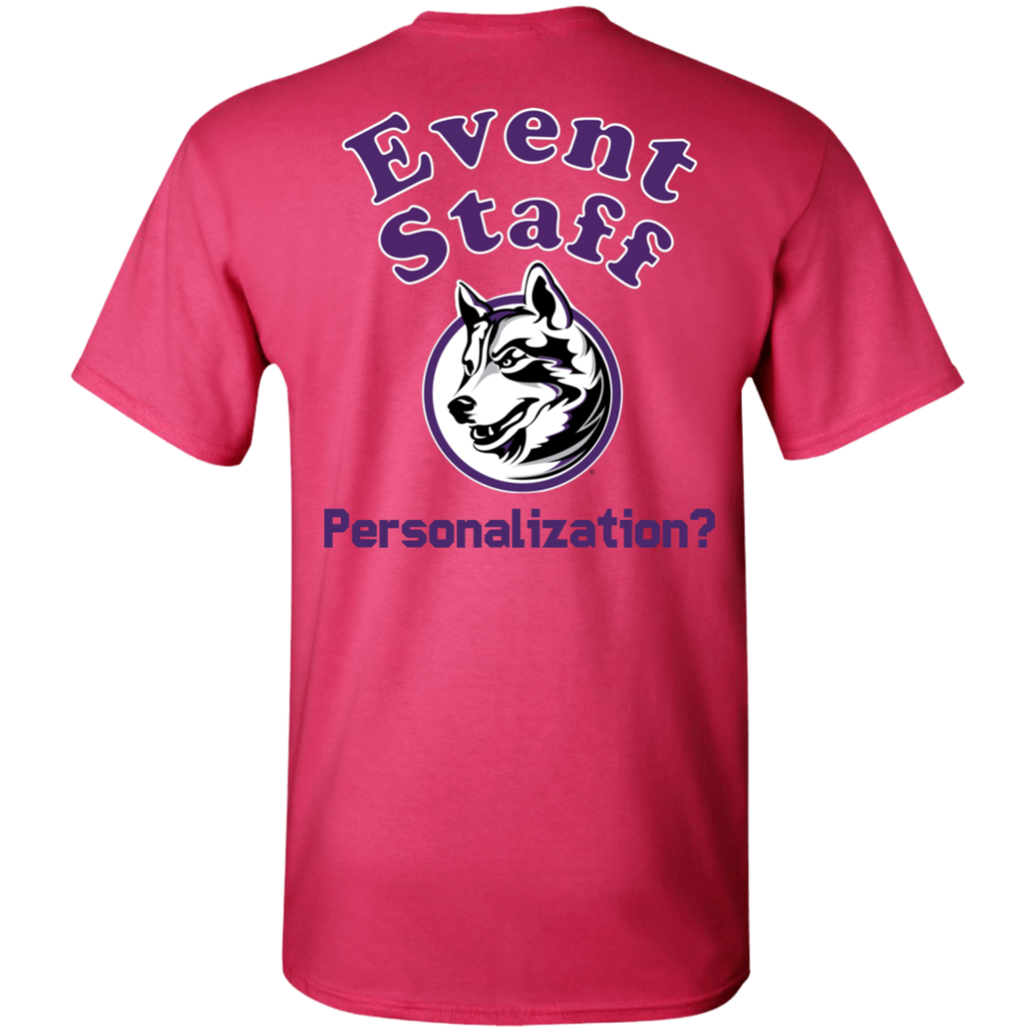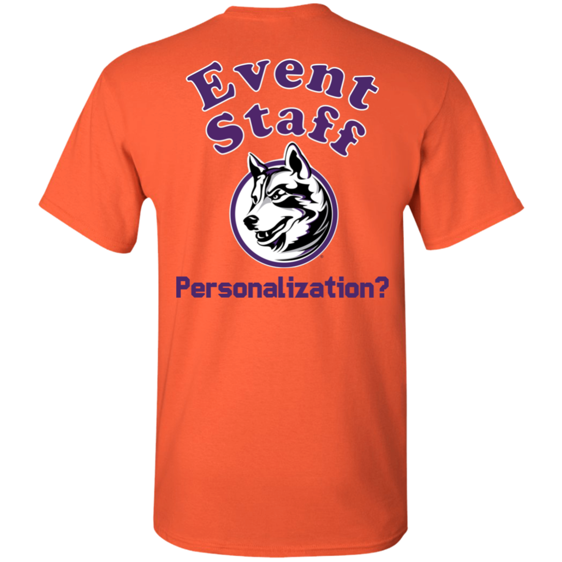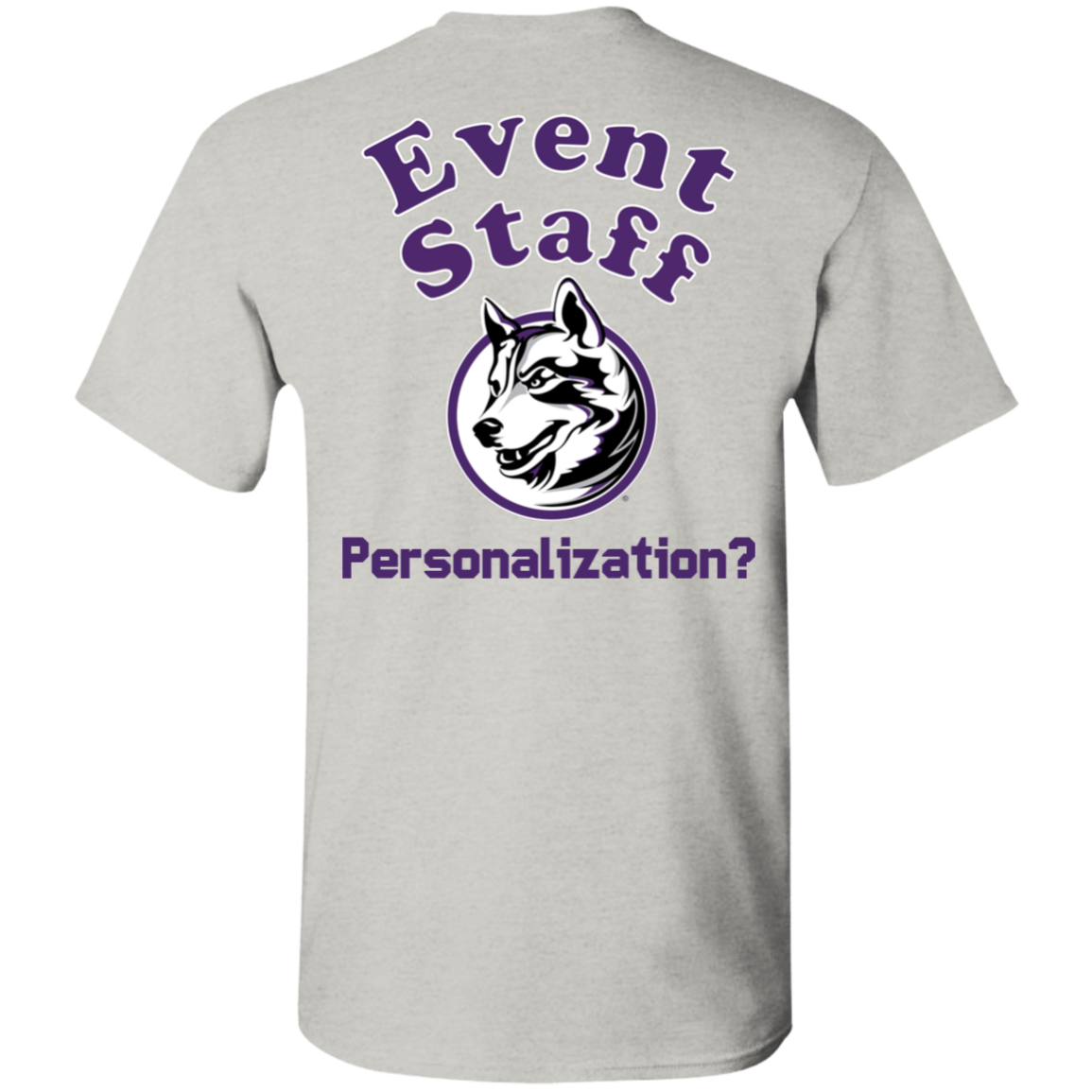 Non-Embroidered shirts that have a graphics in the front left may be customized with either purple or white text (look for "Personalize" or "Personalization").  Buyer should pick a nice contrast to the chosen apparel's color, so the text stands out and is easy to read.