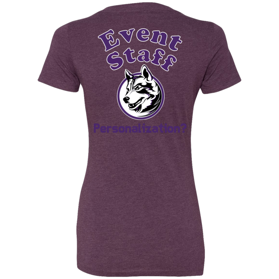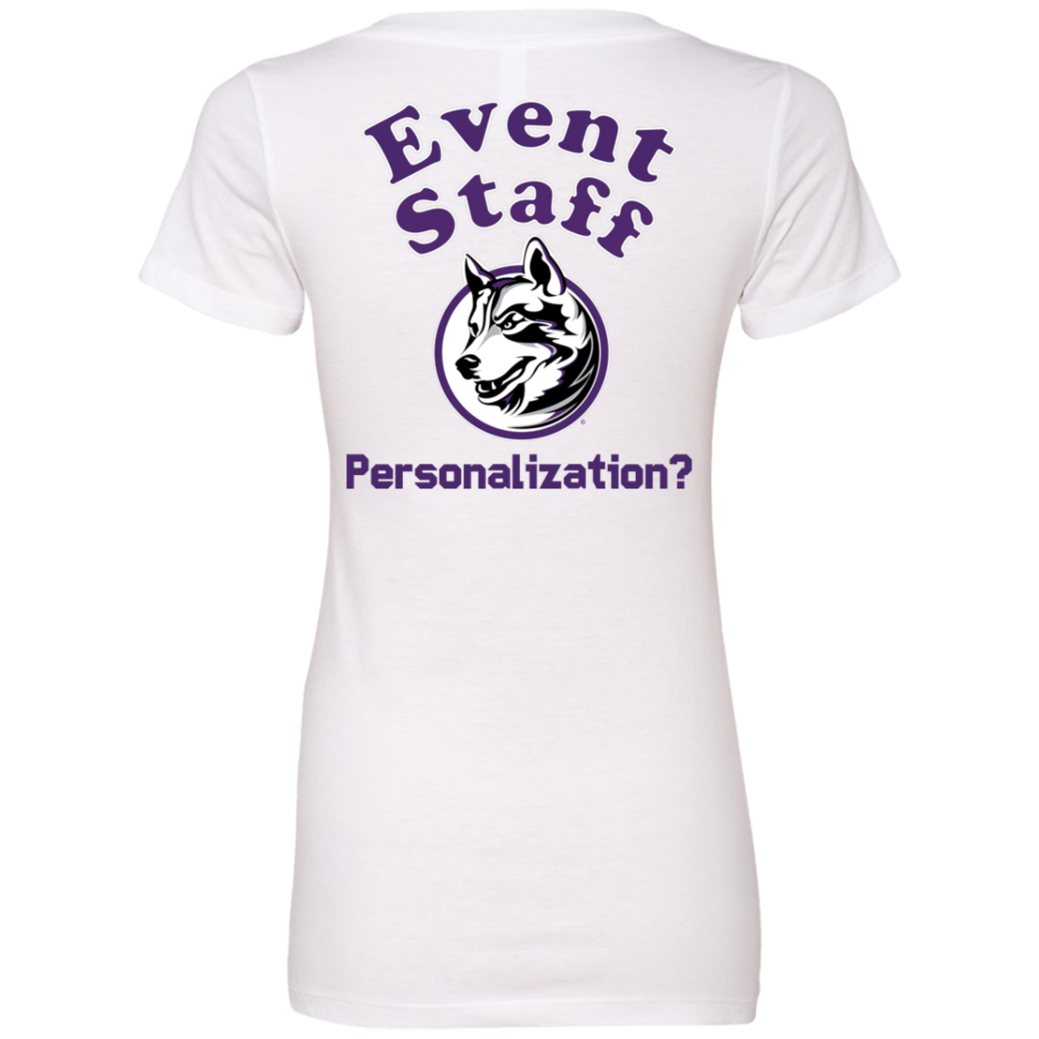 Non-Embroidered shirts that have a graphics in the front left may be customized with either purple or white text (look for "Personalize" or "Personalization").  Buyer should pick a nice contrast to the chosen apparel's color, so the text stands out and is easy to read.