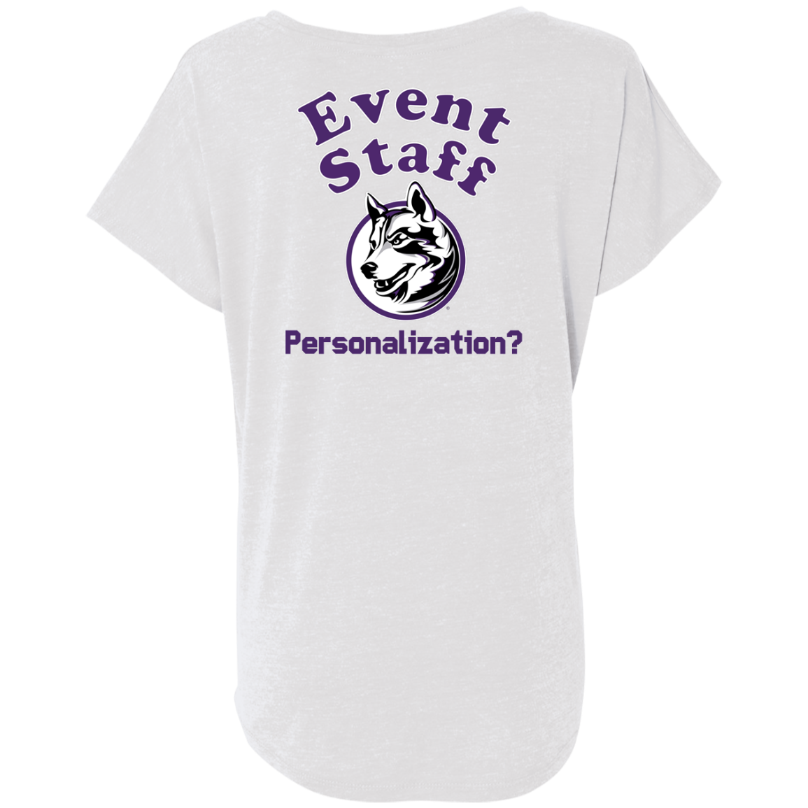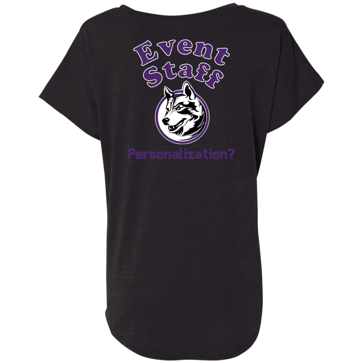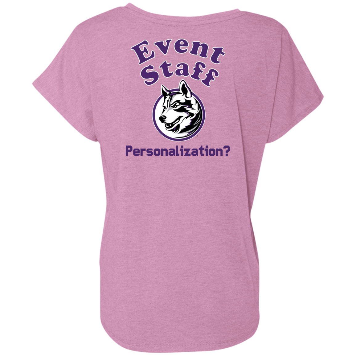 Non-Embroidered shirts that have a graphics in the front left may be customized with either purple or white text (look for "Personalize" or "Personalization").  Buyer should pick a nice contrast to the chosen apparel's color, so the text stands out and is easy to read.