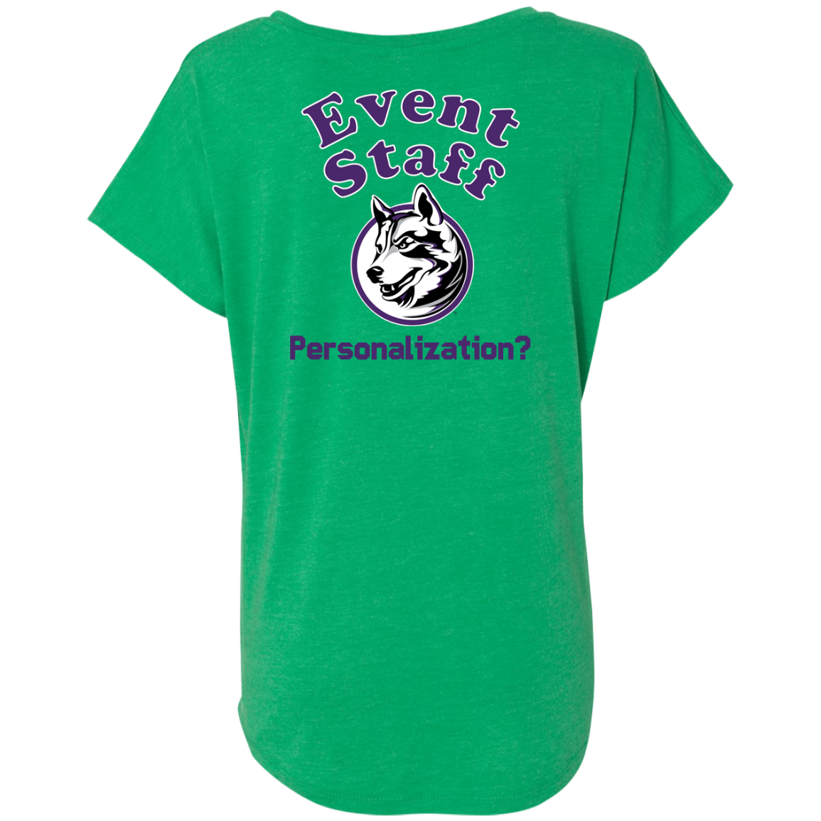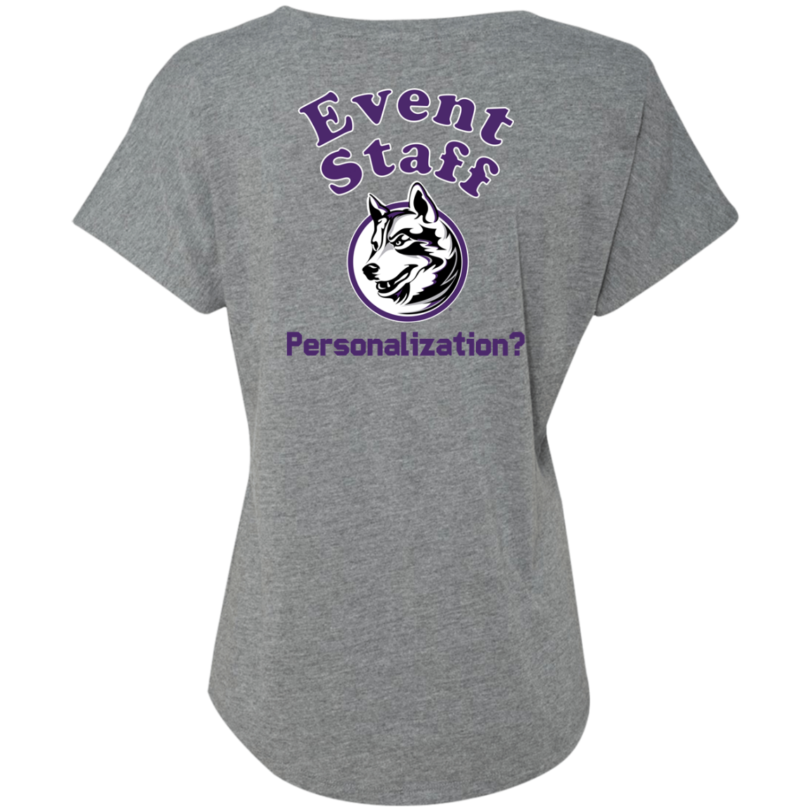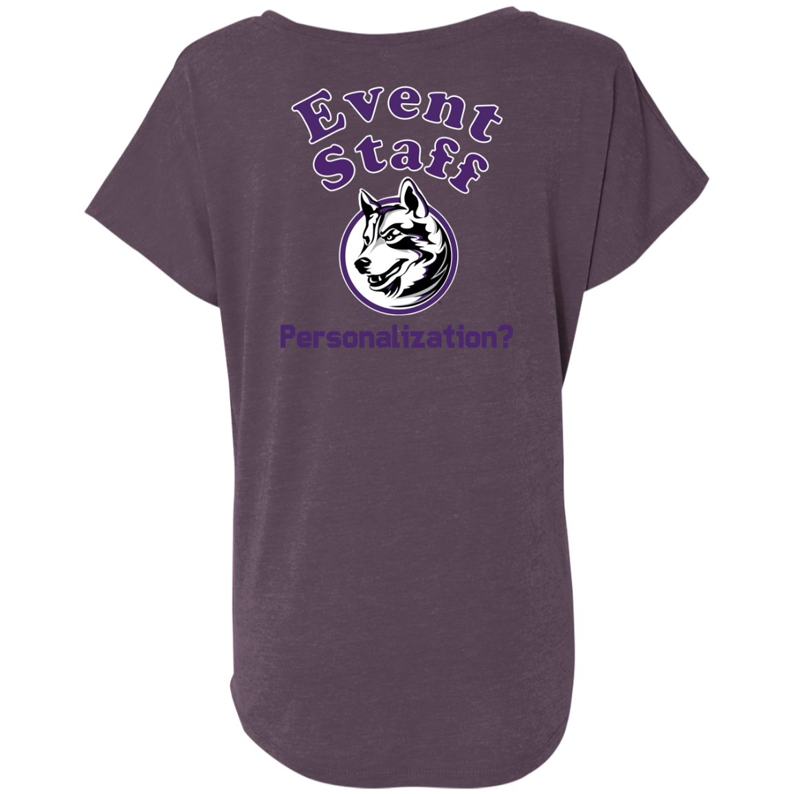 Non-Embroidered shirts that have a graphics in the front left may be customized with either purple or white text (look for "Personalize" or "Personalization").  Buyer should pick a nice contrast to the chosen apparel's color, so the text stands out and is easy to read.