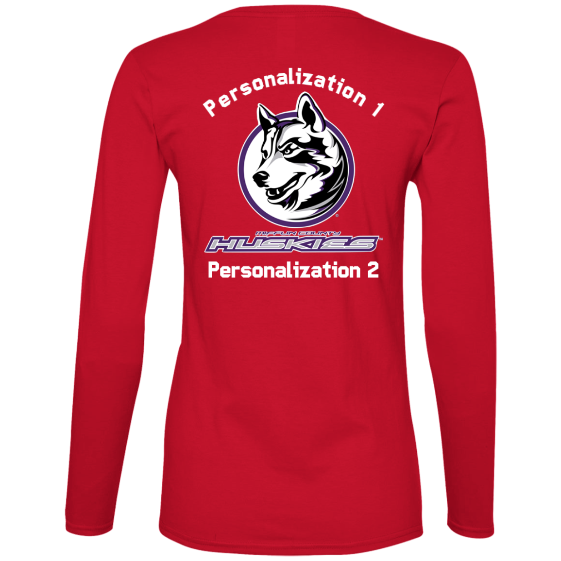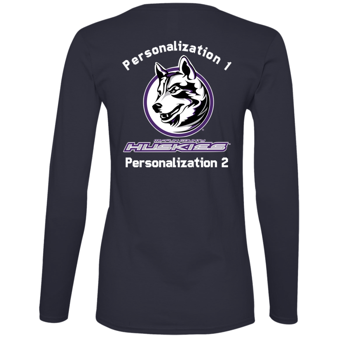 Non-Embroidered shirts that have a graphics in the front left may be customized with either purple or white text (look for "Personalize" or "Personalization").  Buyer should pick a nice contrast to the chosen apparel's color, so the text stands out and is easy to read.