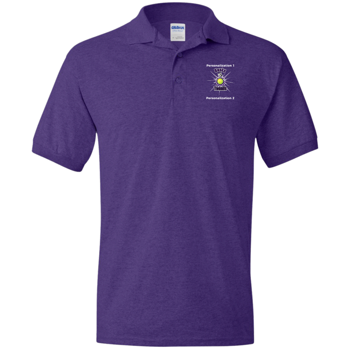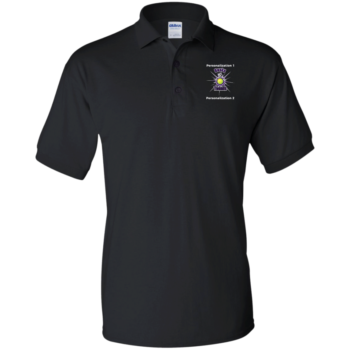 Non-Embroidered shirts that have a graphics in the front left may be customized with either purple or white text (look for "Personalize" or "Personalization").  Buyer should pick a nice contrast to the chosen apparel's color, so the text stands out and is easy to read.